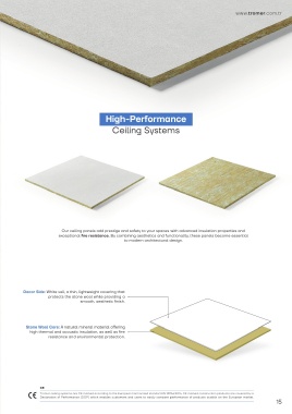 Tromer ceiling systems are CE marked according to the European harmonized standart EN 13964:2014. CE marked construction products are covered by a