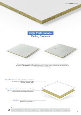 Tromer ceiling systems are CE marked according to the European harmonized standart EN 13964:2014. CE marked construction products are covered by a