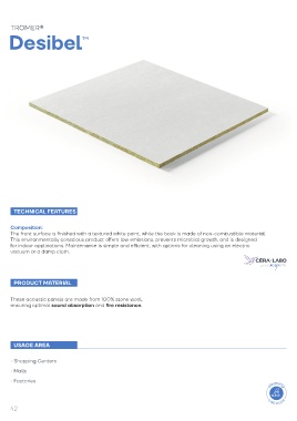 ensuring optimal sound absorption and fire resistance. α : 0.80 (Class A)